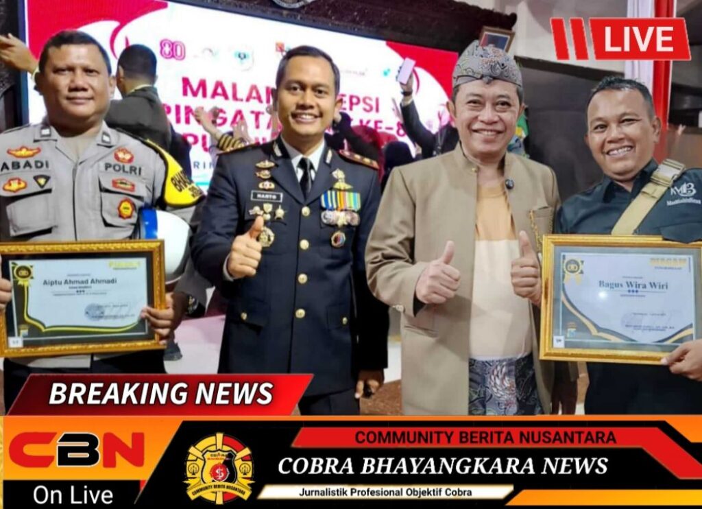 Malam Resepsi HUT ke-80 Proklamasi Kemerdekaan RI 2025 di Pendopo Raden Bagus Asra menjadi momen istimewa. Selain Aiptu Ahmad Abadi, penghargaan juga diberikan kepada dua insan pers yang dinilai berperan penting dalam menyebarkan informasi positif.