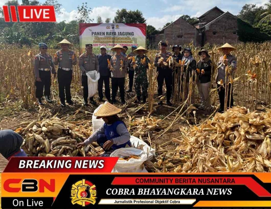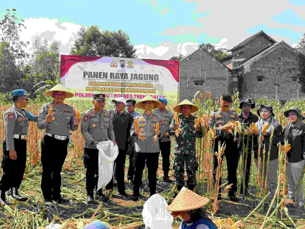 Menuju Swasembada Pangan, Kapolres Trenggalek Bersama Warga Panen Raya Jagung