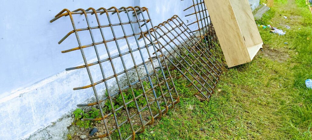 Struktur cakar ayam—penopang utama bangunan—hanya dipasang dengan ikatan kawat bendrat tanpa penguatan sesuai standar teknis (bestek).
