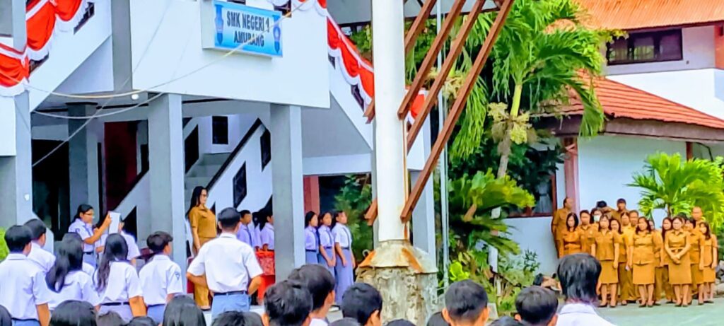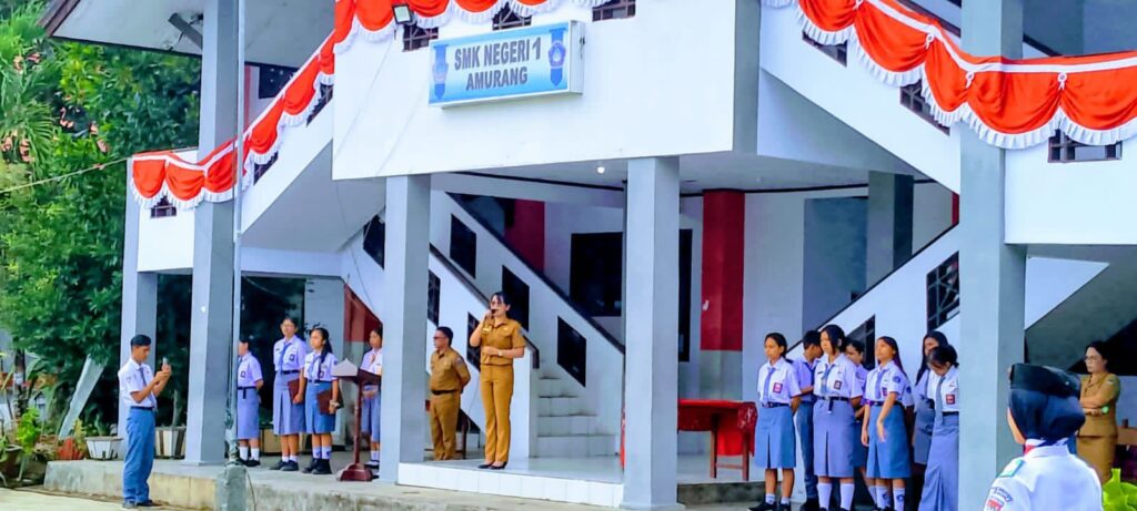Suasana penuh dengan sikap hormat menyelimuti lapangan upacara SMKN 1 Amurang pada Senin pagi (25/8).