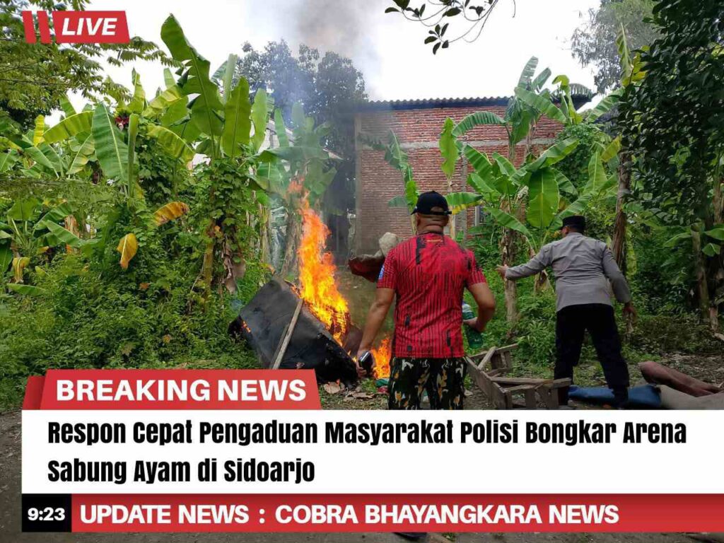 Menindaklanjuti laporan masyarakat, Polresta Sidoarjo Polda Jatim melalui Polsek Sukodono bergerak cepat mendatangi lokasi yang ditengarai adanya perjudian sabung ayam di Desa Plumbungan, Kecamatan Sukodono, Kabupaten Sidoarjo.