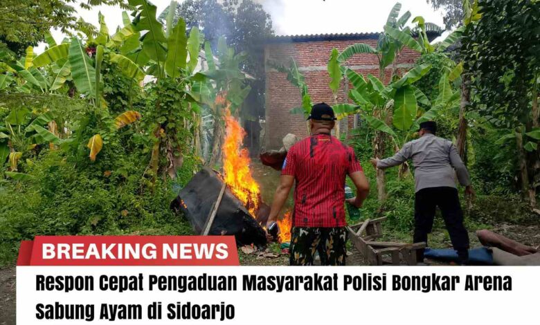 Menindaklanjuti laporan masyarakat, Polresta Sidoarjo Polda Jatim melalui Polsek Sukodono bergerak cepat mendatangi lokasi yang ditengarai adanya perjudian sabung ayam di Desa Plumbungan, Kecamatan Sukodono, Kabupaten Sidoarjo.