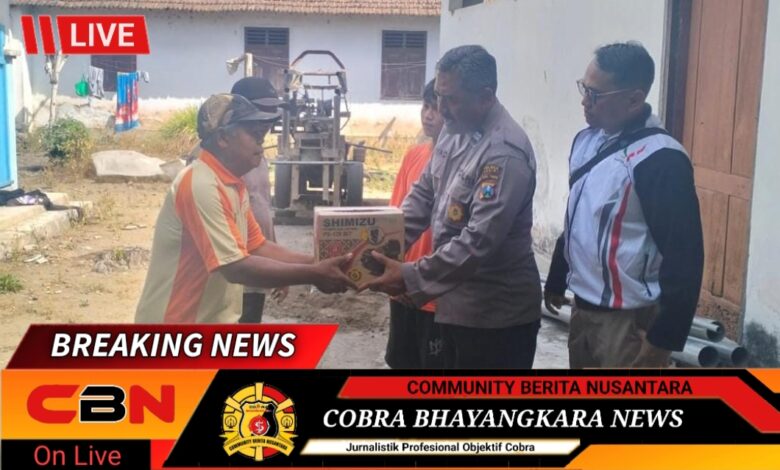 Antisipasi krisis air bersih saat musim kemarau, Polres Kediri Polda Jawa Timur memberikan bantuan berupa sumur bor dan mesin pompa di Musala Nurul Hikmah Dusun Suwaluh Desa Sambirejo Kecamatan Pare Kabupaten Kediri.