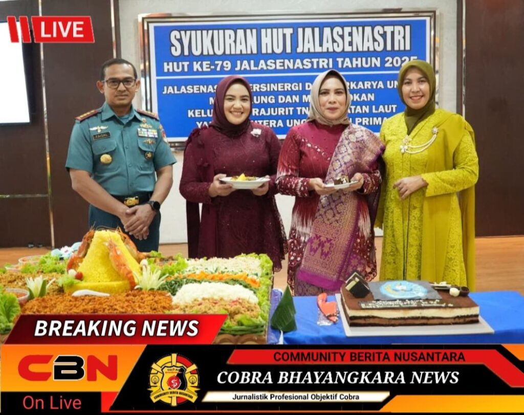 Pangkalan TNI Angkatan Laut (Lanal) Palembang menggelar acara syukuran Hari Ulang Tahun (HUT) Jalasenastri ke-79 Tahun 2025 di Ruang Sultan Mahmud Badaruddin II Mako Lanal Palembang,