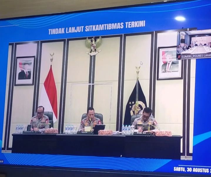 Kapolres Lahat AKBP Novi Edyanto SIK.MIK, yang di dampingi seluruh PJU Polres Lahat, mengikuti pengarahan langsung dari Kapolri Jenderal Polisi Listyo Sigit Prabowo MSi, melalui Zoom Meeting, yang digelar secara serentak di seluruh jajaran Kepolisian,