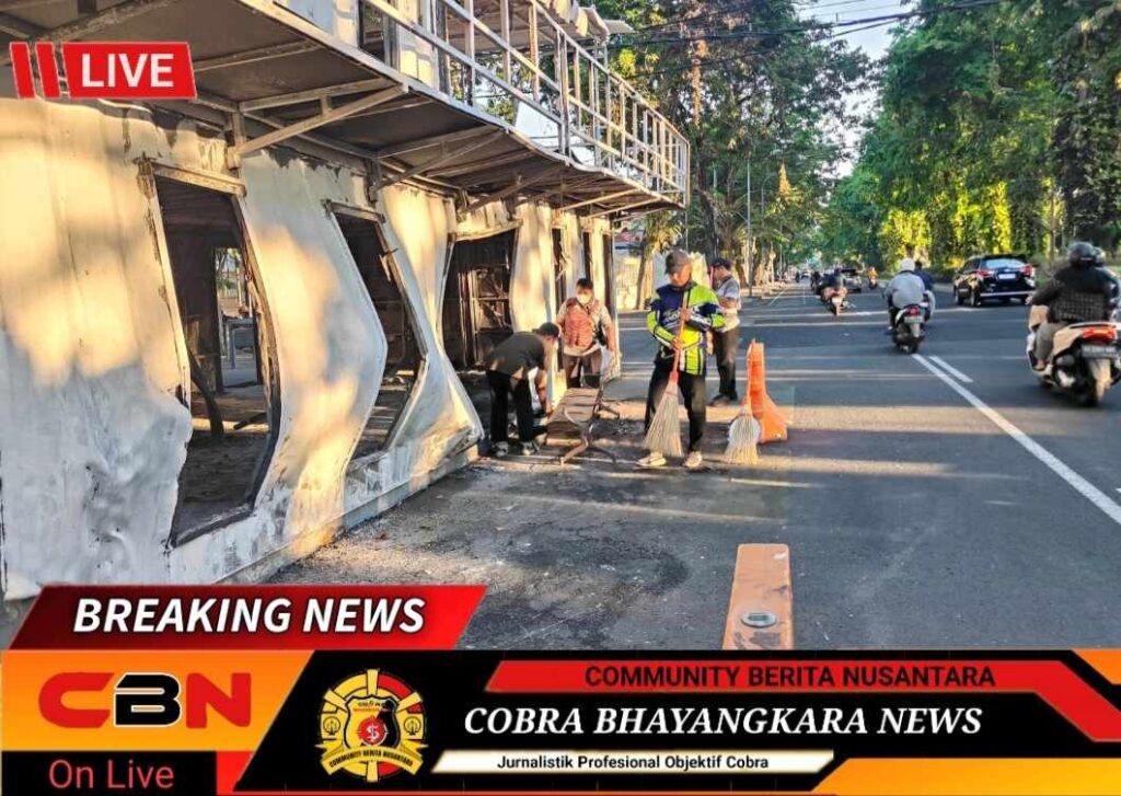 Warga bersama driver ojol membersihkan pos polisi yang dibakar massa aksi pada Jumat (29/8/2025) dini hari. Mereka menyapu, mengepel, hingga membersihkan serpihan kaca di lokasi. Terdapat 3 pos penjagaan yang dibersihkan pada Sabtu (30/8/2025) sekitar pukul 16.00 WIB. Yakni Pos Lantas Bundaran A. Yani atau Taman Pelangi, Raya Darmo atau Taman Bungkul, dan Wonokromo atau sisi timur KBS.