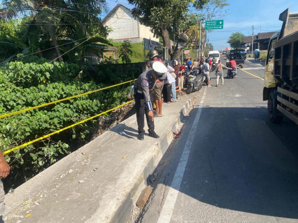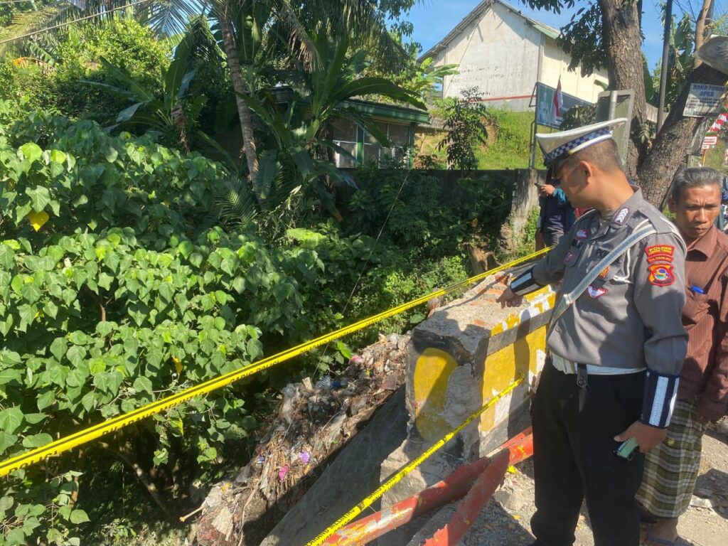Satuan Lalu Lintas (Sat Lantas) Polres Lombok Tengah melaksanakan olah tempat kejadian perkara (TKP) insiden kecelakaan lalu lintas tunggal (Out of Control) kendaraan jenis truk di Jalan Raya Dusun Pemepek, Kecamatan Pringgarata.