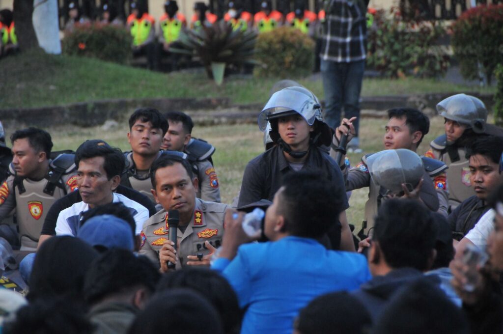 Sekitar pukul 16.45 WIB, massa aksi bergeser ke Mako Polres Bondowoso. Mereka menyampaikan aspirasi terkait tragedi meninggalnya pengemudi ojek online, almarhum Affan Kurniawan, serta beberapa aduan masyarakat yang masuk ke Polres Bondowoso. Kapolres Bondowoso AKBP Harto Agung Cahyono, S.H., S.I.K., M.I.K. langsung menemui massa aksi dan memberikan tanggapan.