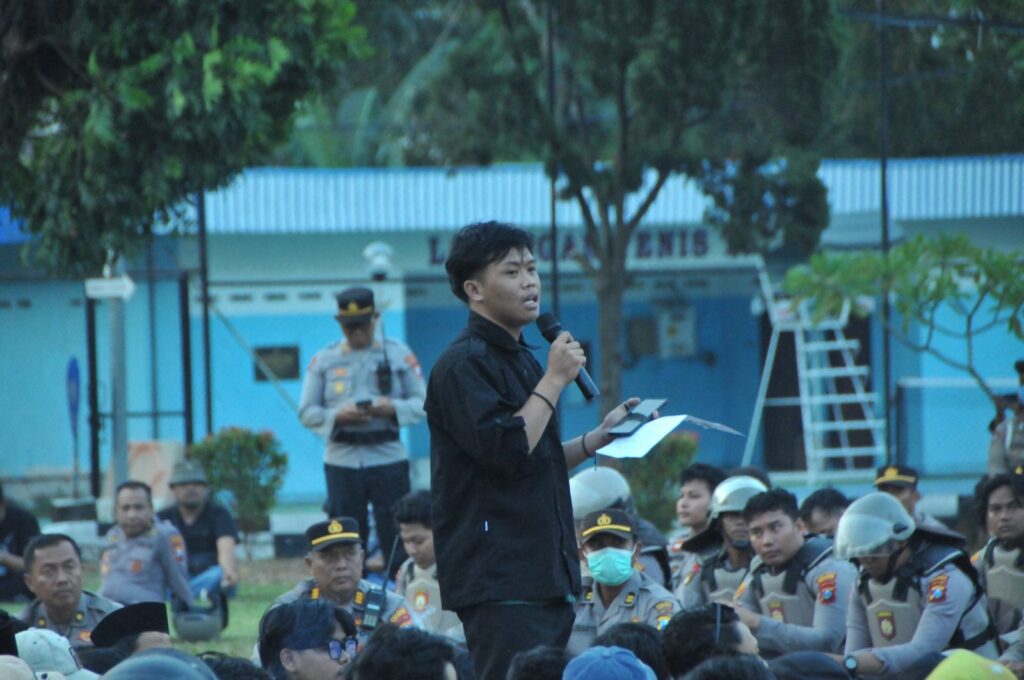 Ratusan Mahasiswa Gelar Aksi Penyampaian Aspirasi di mako Polres Bondowoso, Polres Laksanakan Pengamanan dengan Humanis