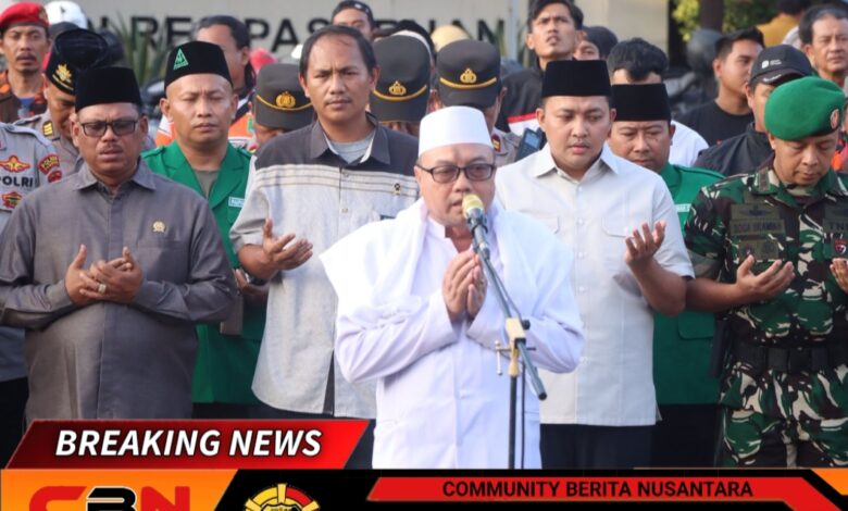 Setelah ikrar, doa bersama dipimpin oleh Ketua MUI Kabupaten Pasuruan KH. Nurul Huda, dilanjutkan foto bersama sebagai simbol kebersamaan lintas elemen.