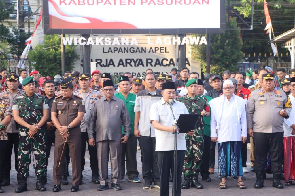 Bupati Pasuruan, H. M. Rusdi Sutejo, dalam arahannya menekankan pentingnya menjaga kedamaian melalui cara-cara yang tertib.