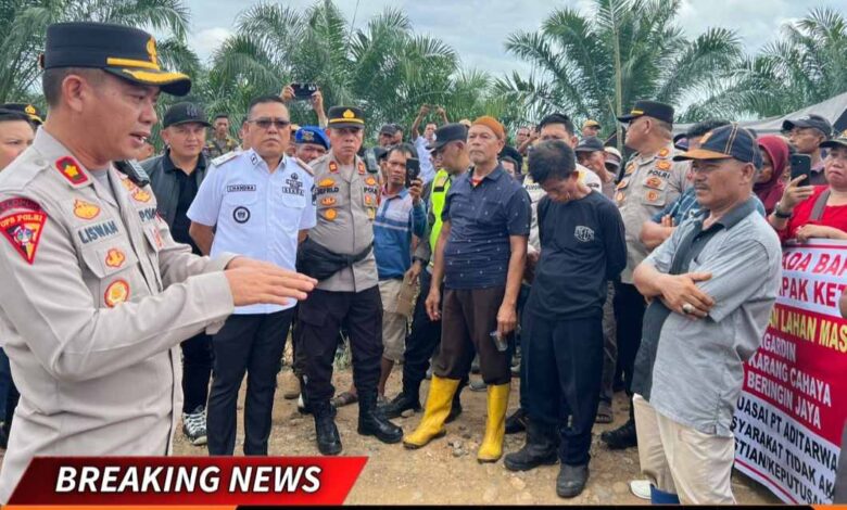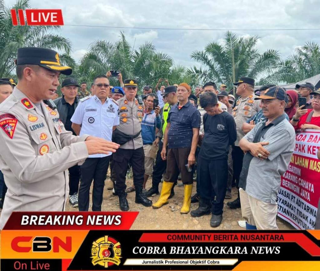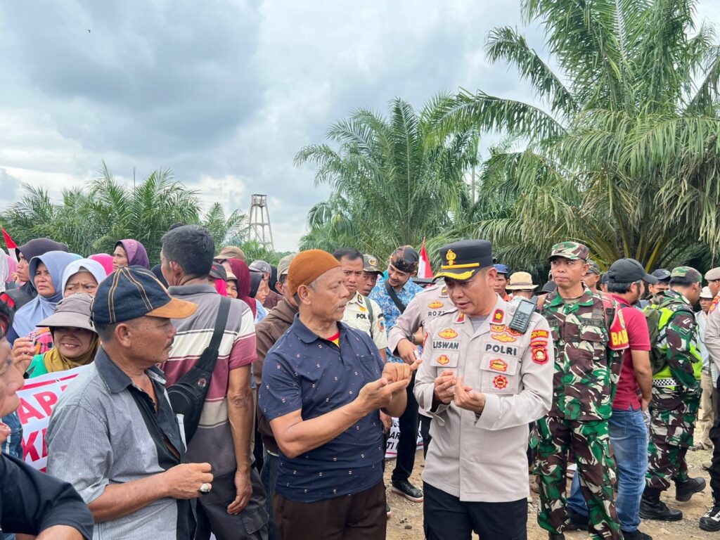 Personel Polres Lahat dan gabungan Polsek melaksanakan Aksi Anjuk Rasa damai Warga 5 (Lima) Desa (Desa Lubuk Seketi, Desa Jajaran Lama, Desa Suka Merindu Desa Wanaraya dan Desa Purworejo) Kecamatan Kikim Barat dan 5 Desa (Desa Pagardin, Desa Karang Cahaya, Desa Beringin Jaya, Desa Lubuk Lungkang dan Desa Padang Bindu) Kikim Selatan Kabupaten Lahat telah di lokasi aksi Simpang 3 (Tiga) Tower depan Kantor PT. Aditarwan Desa Pagardin dan Desa Karang Cahaya Kecamatan Kikim Selatan Kabupaten Lahat,