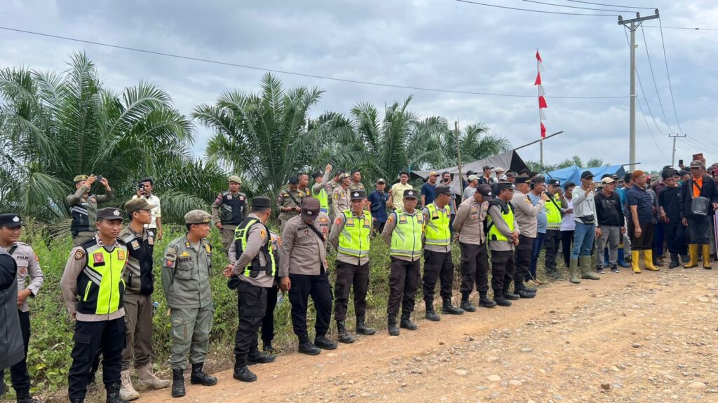 Personil Anggota Polres Lahat, Polda Sumsel Pengaman Aksi Unjuk Rasa Masyarakat Di PT. Adi Tarwan