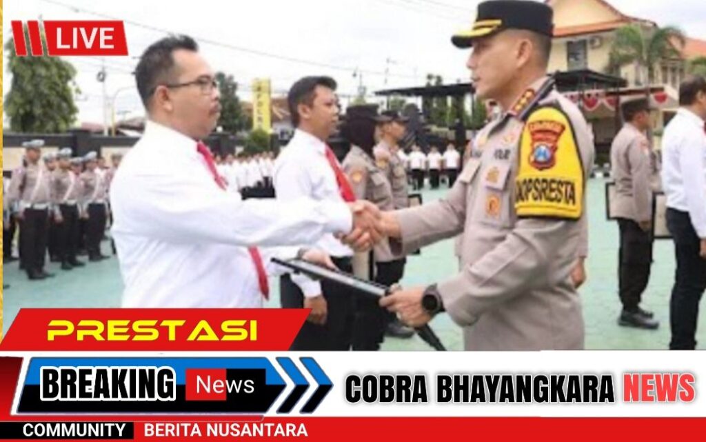 Kepala Kepolisian Resor Kota (Kapolresta) Banyuwangi Kombes Pol Rama Samtama Putra, S.I.K., M.Si., M.H., memberikan penghargaan kepada 43 personel Polresta Banyuwangi dan Polsek jajaran yang berprestasi di berbagai bidang. Pemberian penghargaan berlangsung pada apel di Lapangan Apel Polresta Banyuwangi, Senin (8/9/2025).