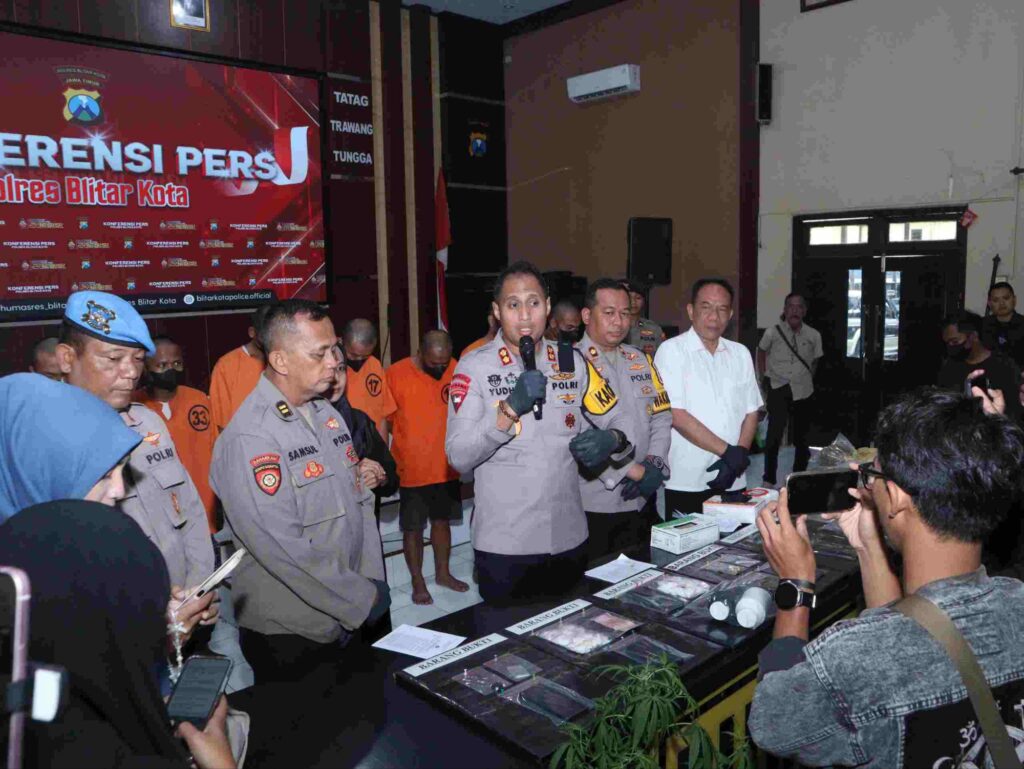 Kapolres Blitar Kota, AKBP Titus Yudho Uly dalam konferensi, pers Rabu (10/09/2025) mengatakan dari hasil operasi itu, Polisi berhasil amankan barang bukti sebanyak 2,46 gram sabu-sabu, 0,75 gram ganja kering,1.403 pil dobel L dan 820 tanaman ganja yang ditanam.