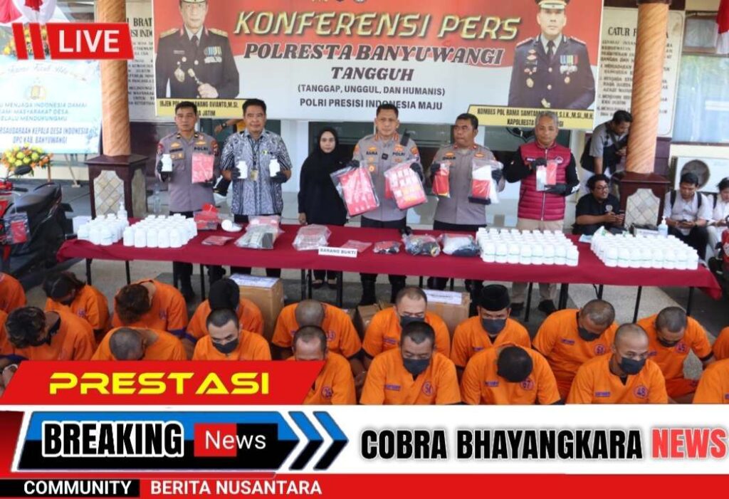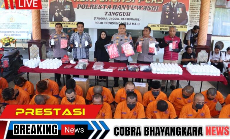 Polresta Banyuwangi Bekuk 43 Tersangka, sita 150 gram sabu dan 159 ribu Okerbaya