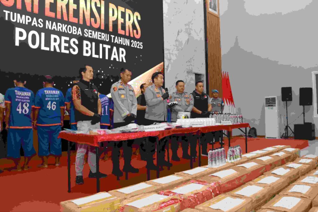 Polres Blitar Polda Jatim berhasil mengungkap mengungkap 10 kasus dengan total 13 tersangka dari kasus peredaran narkotika, obat-obatan terlarang (okerbaya), dan minuman keras melalui Operasi Tumpas Narkoba 2025.