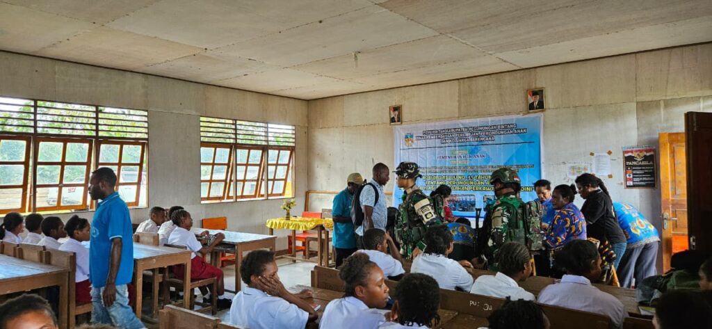 Kepedulian TNI terhadap masa depan generasi muda dan kelompok rentan kembali diwujudkan oleh personel Pos Iwur Satgas Pamtas RI–PNG Yonif 751/Vira Jaya Sakti (VJS) melalui kegiatan Sosialisasi Perlindungan Anak dan Perempuan di SMP Iwur, Distrik Iwur, pada Senin (15/9/2025).