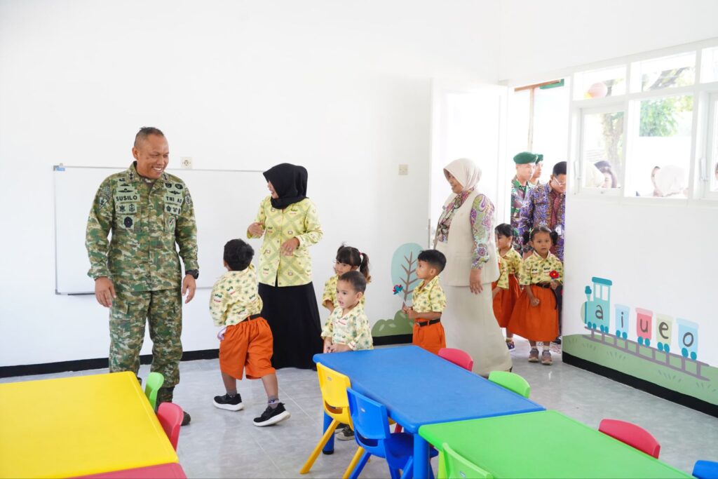Dalam sambutannya, Panglima menuturkan pendidikan anak usia dini merupakan fondasi utama dalam membentuk karakter, budi pekerti, serta kecerdasan generasi penerus bangsa. Dengan dibangunnya gedung ini, diharapkan dapat menanamkan nilai-nilai disiplin, kebersamaan, dan cinta tanah air sejak dini kepada anak-anak kita.