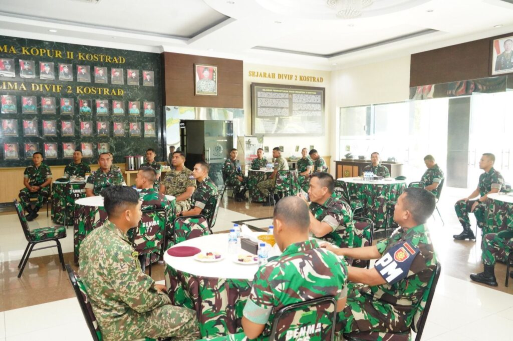 Divif 2 Kostrad menerima kunjungan kehormatan dari Tentara Diraja Malaysia (TDM) dalam rangka Latihan Bersama Linud Malindo-8 tahun 2025. Kegiatan ini menjadi simbol eratnya hubungan bilateral dan semangat sinergi militer antara Indonesia dan Malaysia. Latihan ini akan berlangsung selama 2 minggu kedepan berbasis di MaYonif 503/Mayangkara Mojokerto. Malang (Kamis 18 September 2025).