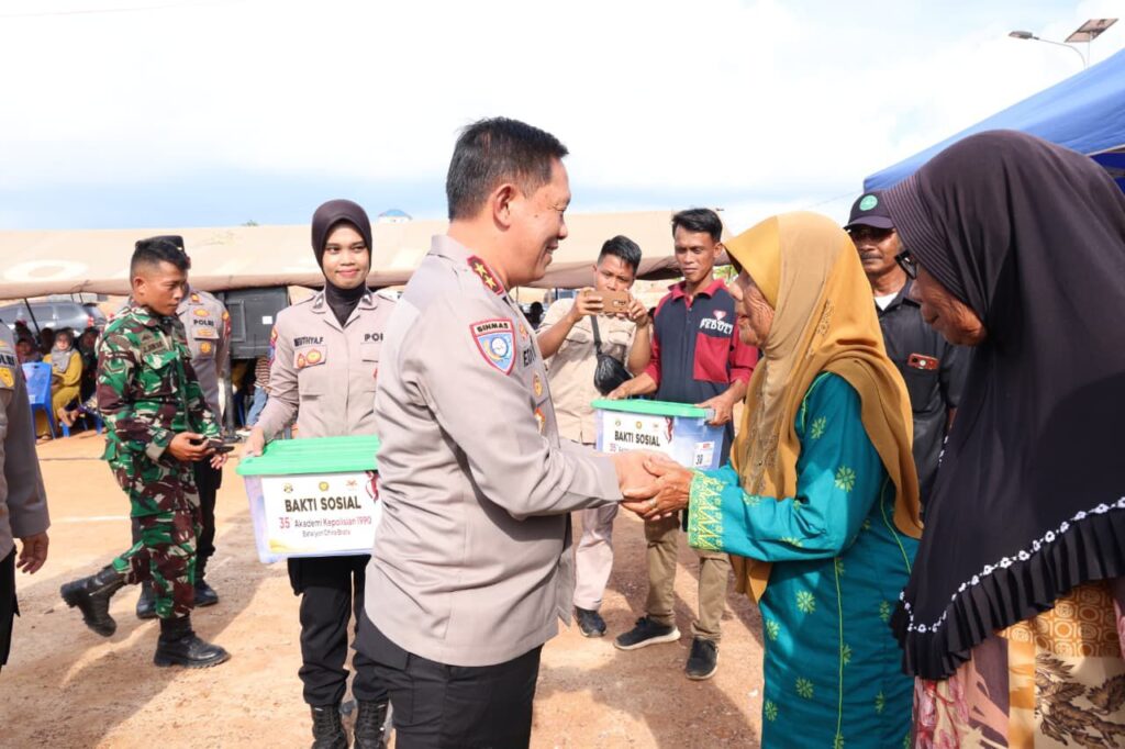 Batam, 18 September 2025 – Korps Binmas Baharkam Polri menyelenggarakan bakti sosial dalam rangka memperingati 35 Tahun Ikatan Keluarga Dhira Brata (IKDB) Alumni Akpol Angkatan 1990 di Perumahan Rempang Eco City, Kelurahan Sembulang, Kecamatan Galang, Batam. Kegiatan dengan tema “Bersama Berbagi Tak Bertepi” ini dihadiri oleh sejumlah pejabat tinggi Polri dan diterima dengan antusias oleh masyarakat setempat.