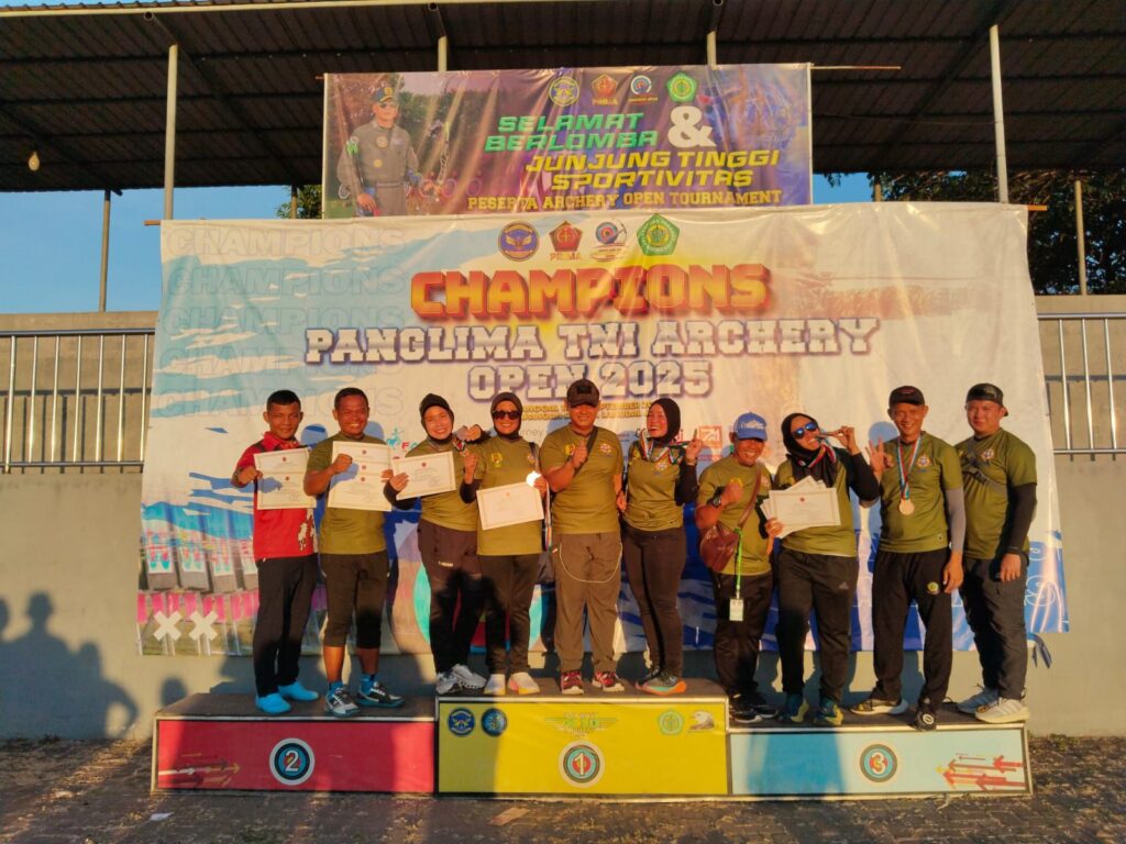 Prestasi membanggakan kembali ditorehkan atlet binaan TNI AD pada ajang Piala Panglima TNI 2025 tgl 18 – 22 September di Juanda Surabaya, cabang olahraga panahan. Tim panahan TNI AD sukses mengoleksi 9 medali yang terdiri dari 4 emas, 1 perak, dan 4 perunggu, menegaskan dominasi TNI AD dalam kancah olahraga bergengsi tingkat nasional.