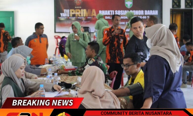 Kodim 0110/Abdya menggelar bhakti sosial donor darah sebagai rangkaian dalam menyambut peringatan Hari Ulang Tahun (HUT) ke-80 TNI, berlangsung di aula Makodim setempat, Desa Keude Paya Kecamatan Blangpidie, Minggu (21/9/2025).