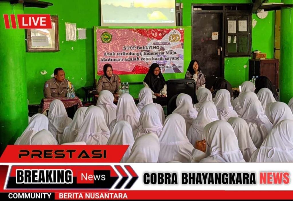 Polsek Pandaan masuk kze lingkungan pesantren untuk memberikan edukasi kepada para santri tentang etika berlalu lintas dan pencegahan bullying di Aula Pondok Pesantren Fadillatul Qur’an, Desa Sumbergedang, Kecamatan Pandaan, Rabu (24/9/2025).