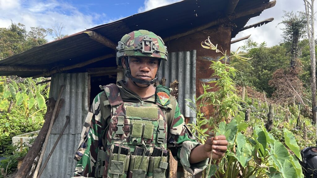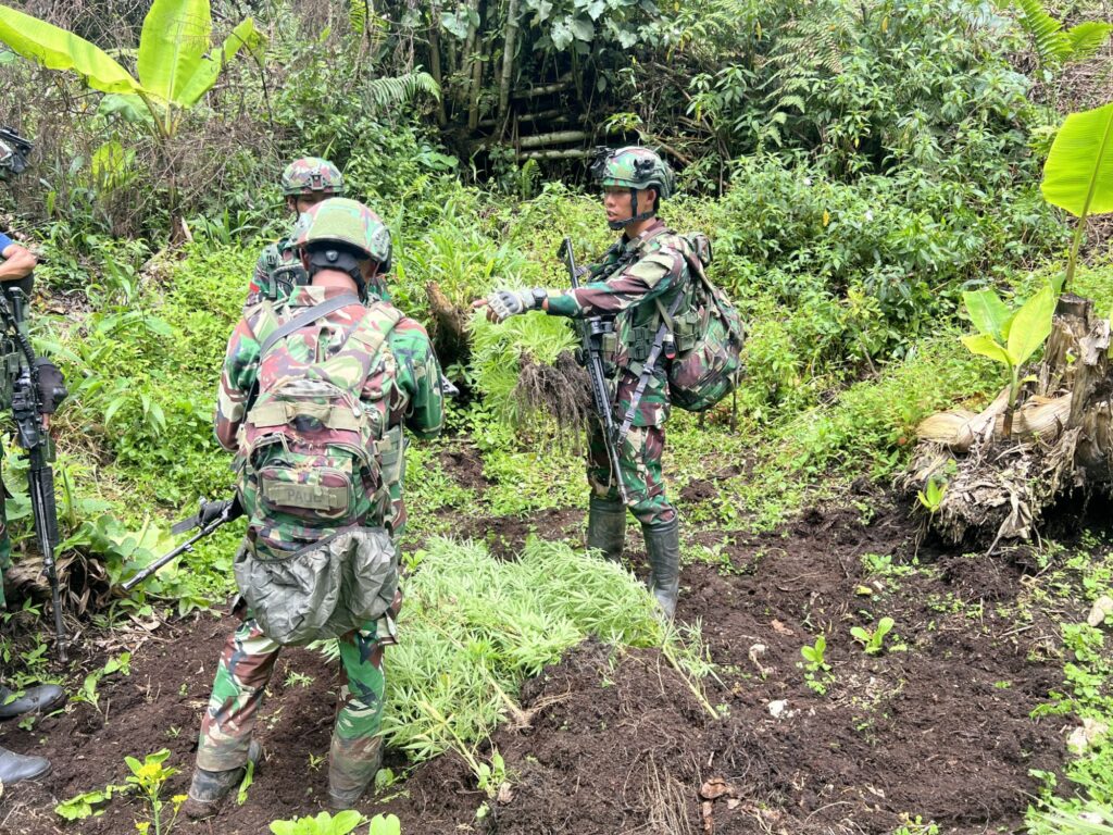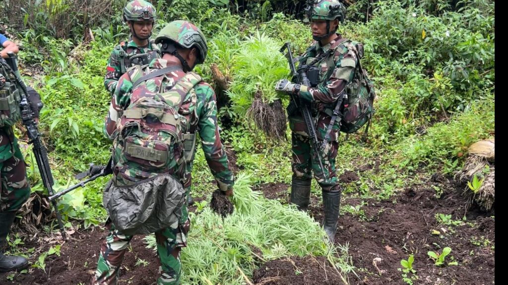 Satgas Pamtas RI–PNG Yonif 751/Vira Jaya Sakti (VJS) bersama Satgas Prayudha dan Satgas Ketapang berhasil menemukan empat kebun ganja tersembunyi di Kampung Aldom, Distrik Oksibil milik Warga yang masih dalam Penyelidikan.