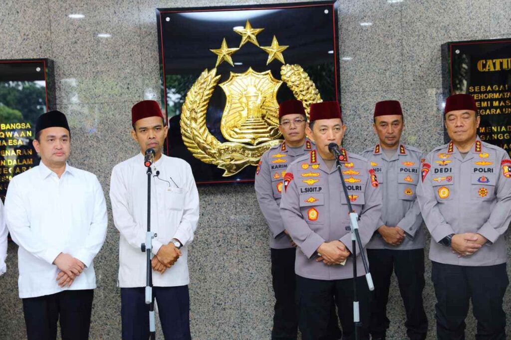 Jakarta, 26 September 2025 – Kepolisian Negara Republik Indonesia (Polri) menggelar kegiatan keagamaan di Mabes Polri, Jakarta Selatan, yang diawali dengan Salat Jumat berjemaah bersama Ustaz Abdul Somad (UAS) dan dilanjutkan dengan tausiah serta ceramah agama. Kegiatan ini diikuti oleh seluruh jajaran Polda, Polres, Polsek.