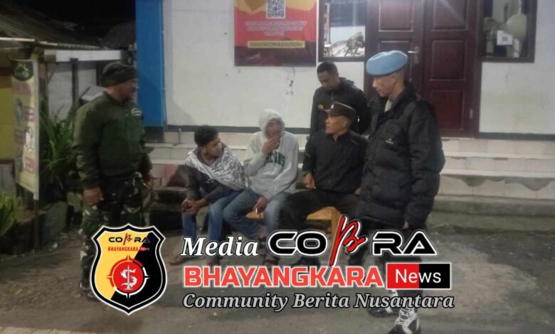 Personel Polsek Tosari melaksanakan patroli pos kamling di desa binaan untuk menjaga keamanan dan ketertiban masyarakat (harkamtibmas), Senin malam (22/9/2025).