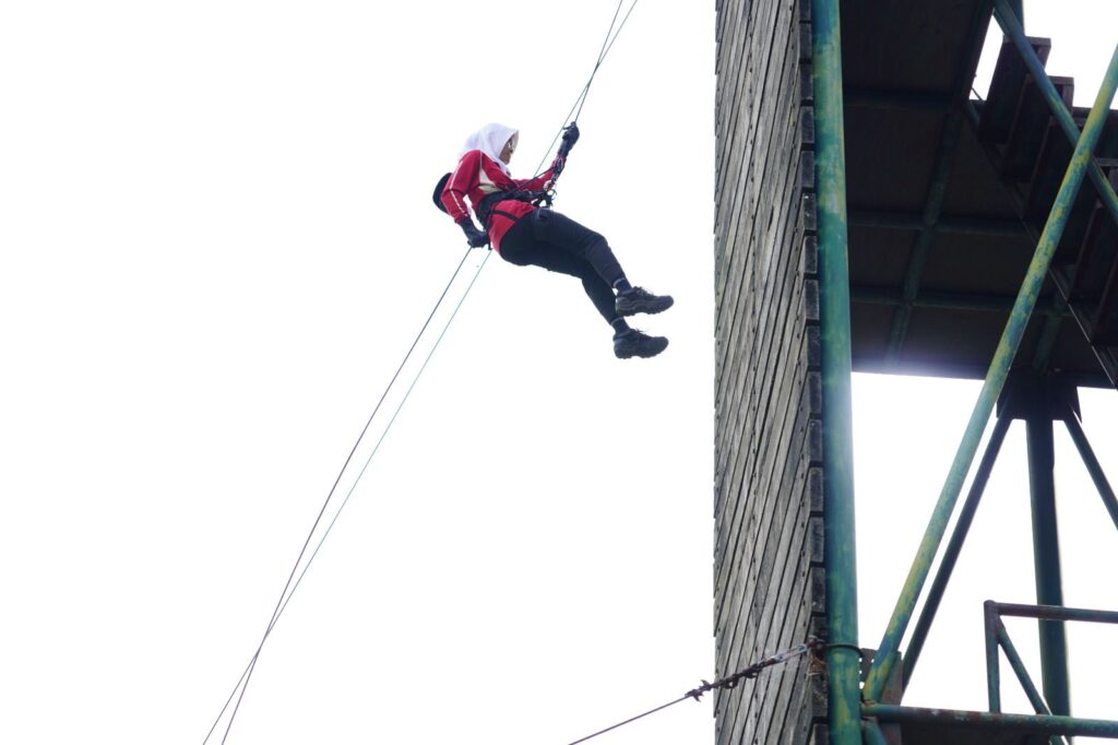 Kegiatan outbond dalam program Bela Negara Mahasiswa Universitas Negeri Malang (UM) menghadirkan pengalaman pembentukan karakter tangguh yang menyeluruh. Melalui tantangan fisik seperti jembatan tali dua, jaring pendarat, repling, snepling, dan turun tebing, para peserta diuji dalam hal keberanian, daya tahan, dan mental yang membaja. Setiap rintangan menjadi media pembelajaran yang menyenangkan sekaligus mendalam, membentuk mahasiswa yang tangguh secara mental dan fisik.(Malang 28 September 2025)