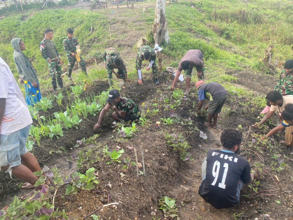 Menariknya, bibit sayuran diperoleh langsung dari masyarakat sekitar, dan proses penanaman dilakukan bersama-sama, menciptakan suasana penuh gotong royong dan kekeluargaan antara prajurit dan warga. Kebersamaan ini menjadi simbol kuat bahwa TNI tidak bekerja sendiri, tetapi tumbuh dan berkembang bersama rakyat.