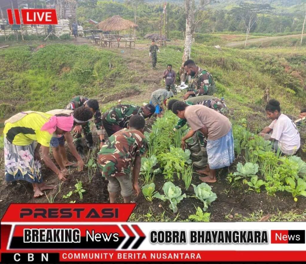 Dalam semangat membangun dari perbatasan, prajurit Pos Parim Satgas Pamtas RI–PNG Yonif 751/Vira Jaya Sakti (VJS) terus menunjukkan kepedulian nyata terhadap masyarakat sekitar melalui program ketahanan pangan pada (Minggu,28/9/2025).