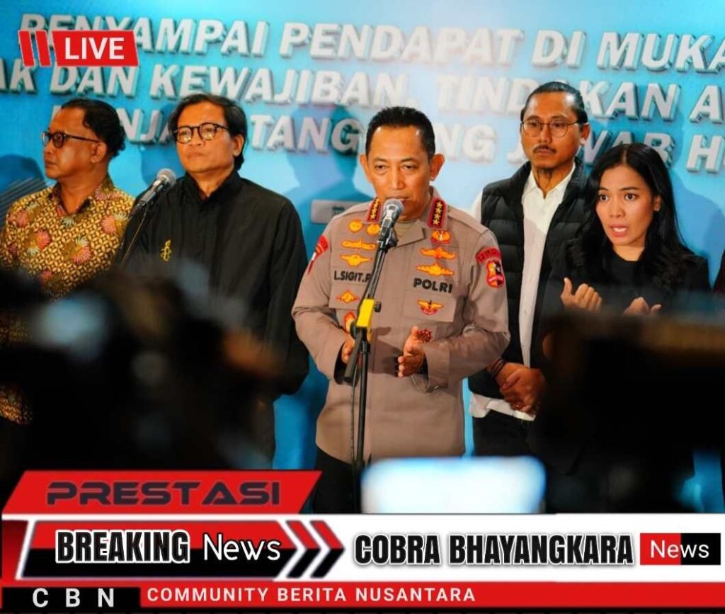 “Tentunya kami ingin mendengar langsung baik dari masyarakat Sipil terhadap apa yang harus Polri lakukan ke depan dalam menjaga ruang demokrasi agar tetap berjalan dengan lancar, aman, dan juga pesan tersampaikan,” kata Sigit di Gedung PTIK, Jakarta Selatan, Senin (29/9/2025).