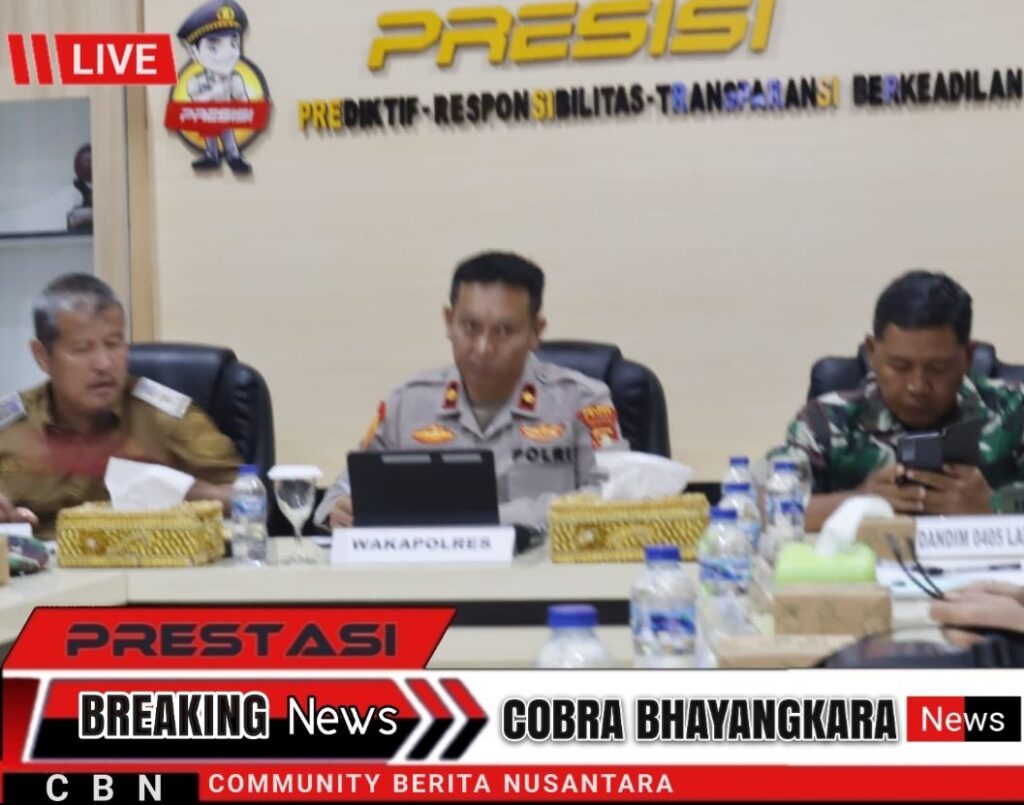 Kapolres Lahat AKBP Novi Edyanto SIK.MIK, yang diwakiki Waka Polres Lahat, Kompol Liswan Nurhapis SH, yang di dampingi oleh Kabag Ops Kompol Toni Arman SH.MSI, memimpin rapat koordinasi lintas instansi dalam rangka membahas rencana pengamanan unjuk rasa terkait sengketa lahan di PT.SMS dengan 32 desa yang ada di kecamatan Kikim Arean yang rencananya akan digelar pada hari kamis 02 oktober 2025 di Areal Pabrik Sawit PT.SMS.
