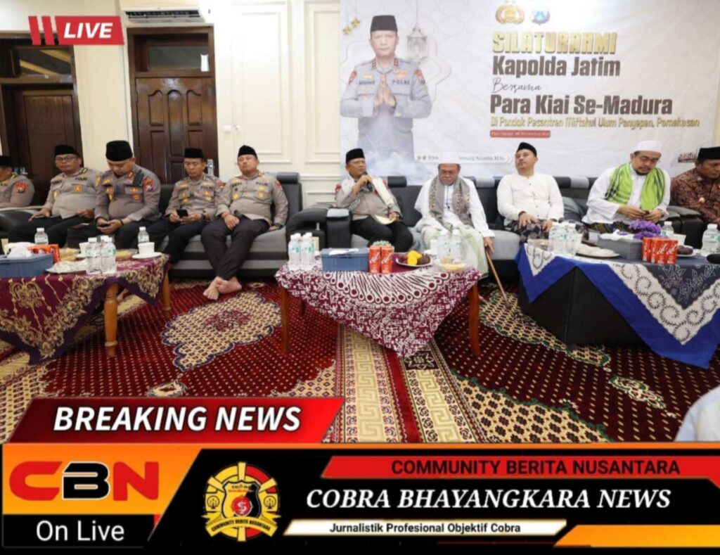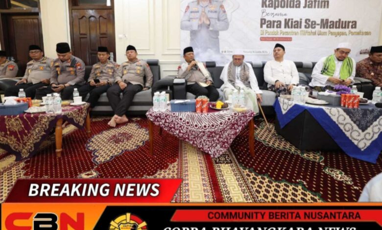 Kapolda Jawa Timur Irjen Pol. Drs. Nanang Avianto, M.Si., didampingi para pejabat utama Polda Jatim dan Kapolres Bangkalan AKBP Hendro Sukmono serta Kapolres Sampang Hartono, melaksanakan silaturahmi dengan para kiai, alim ulama, habaib, dan pimpinan pondok pesantren se-Madura di Pondok Pesantren Sembilangan, Bangkalan. Kamis, (6/11/2025).