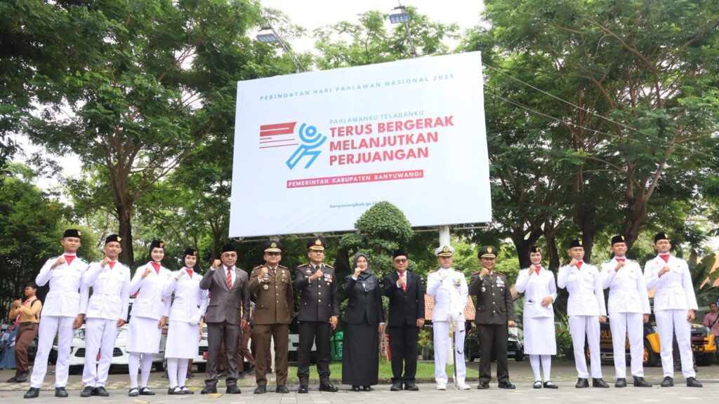 Peringatan Hari Pahlawan 10 November 2025 di Banyuwangi berlangsung dengan penuh penghormatan dan refleksi. Kapolresta Banyuwangi Kombes Pol Rama Samtama Putra, S.I.K., M.Si., M.H., melaksanakan kegiatan bersama jajaran Forkopimda, di antaranya Bupati Banyuwangi Hj. Ipuk Fiestiandani, S.Pd., M.KP., Wakil Bupati Ir. H. Mujiono, M.Si., Danlanal Banyuwangi Letkol Laut (P) M. Puji Santosa, M.Sc., Dandim 0825 Banyuwangi Letkol (Arm) Triyadi Indra Wijaya, S.H., M.I.P., serta stakeholder terkait lainnya.
