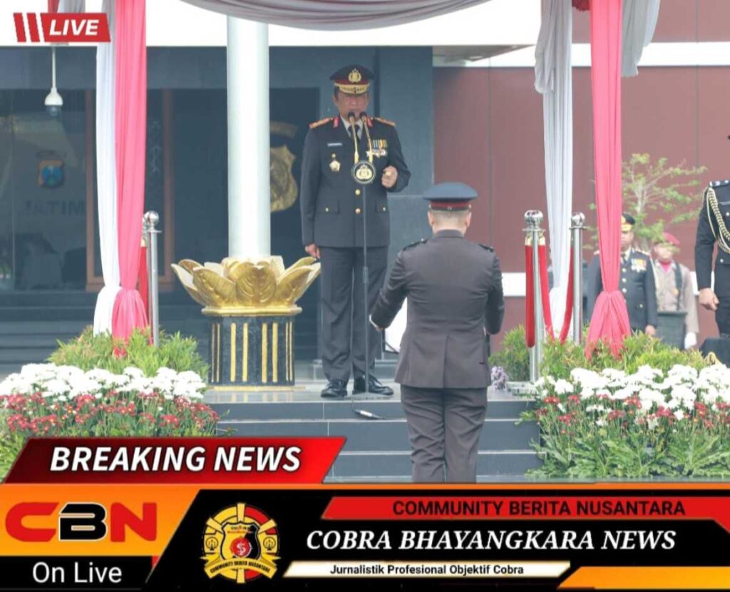 Upacara dipimpin oleh Kapolda Jawa Timur Irjen Pol Drs. Nanang Avianto, M.Si., dan diikuti oleh Pejabat Utama Polda Jatim, personel Polri, ASN, serta peserta upacara lainnya.