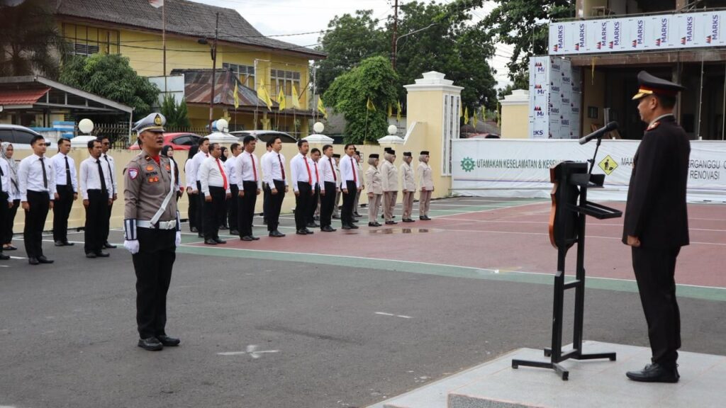di halaman Mapolres. Upacara dimulai tepat pukul 07.30 WIB, diawali dengan pengibaran bendera merah putih yang diiringi lagu kebangsaan Indonesia Raya, disusul dengan hening cipta untuk mengenang jasa para pahlawan yang telah gugur demi kemerdekaan Indonesia,