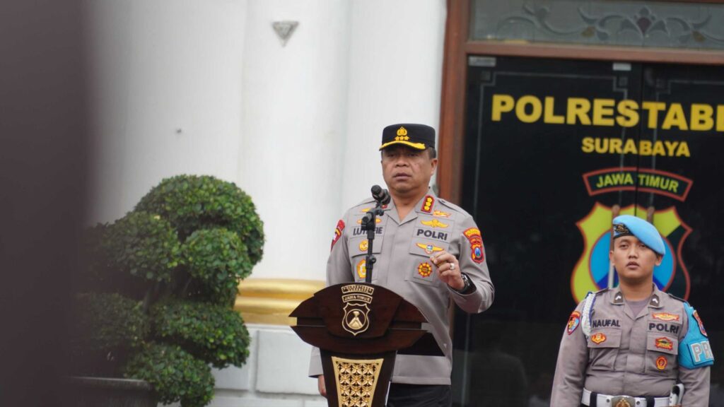 Upaya memperkuat pelayanan publik dan meningkatkan rasa aman warga Kota Surabaya, Kapolrestabes Surabaya Kombes Pol Luthfi Sulistiawan memimpin apel pasukan mentari pagi pelayanan masyarakat dan Houfbereau bersinar yang diikuti seluruh Polsek jajaran Polrestabes Surabaya, Rabu (12/11/2025).