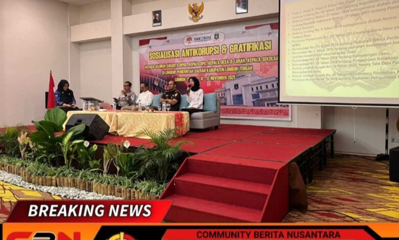 Dalam rangka memperkuat komitmen bersama dalam mewujudkan tata kelola pemerintahan yang bersih, transparan, dan bebas dari korupsi, Sat Reskrim Polres Lombok Tengah melaksanakan kegiatan Sosialisasi Anti Korupsi dan Gratifikasi kepada kepala Desa dan Lurah se-Kabupaten Lombok Tengah.