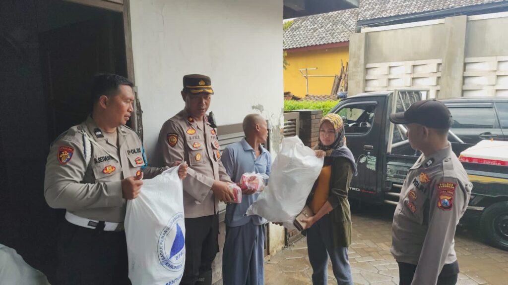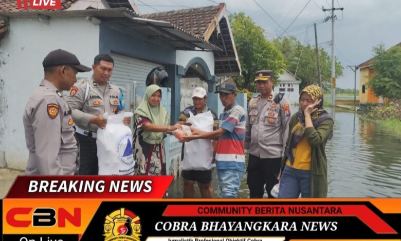 Polsek Beji bersama Pemerintah Desa Kedungringin menyalurkan bantuan sosial kepada ratusan warga yang terdampak banjir di Desa Kedungringin, Kecamatan Beji, Jumat (14/11/2025).
