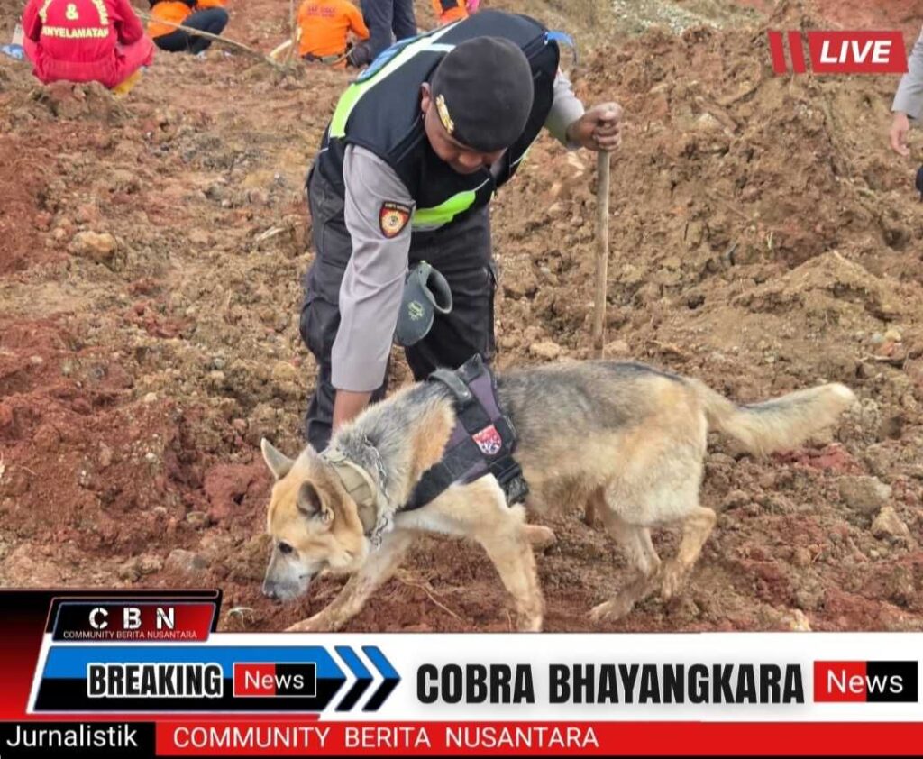 Polri memperkuat upaya pencarian korban tanah longsor di Desa Cipendeuy, Kecamatan Majenang, Kabupaten Cilacap, Jawa Tengah, dengan menurunkan ratusan personel dan tim anjing pelacak. Total 205 personel diterjunkan pada hari kedua operasi SAR untuk menyisir lokasi terdampak.