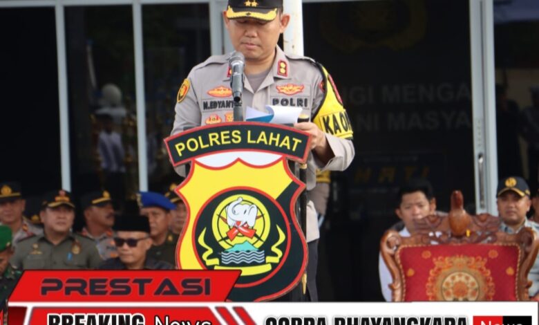 Kapolres Lahat AKBP Novi Edyanto SIK.MIK memimpin Apel Pasukan Operasi Zebra Musi 2025 sebagai tanda dimulainya rangkaian kegiatan kepolisian yang berfokus pada penegakan disiplin berlalu lintas. Apel tersebut berlangsung di halaman Mapolres Lahat dan dihadiri oleh Forkompimda kab.Lahat / yang mewakili, dan Iintansi terkait lainya.