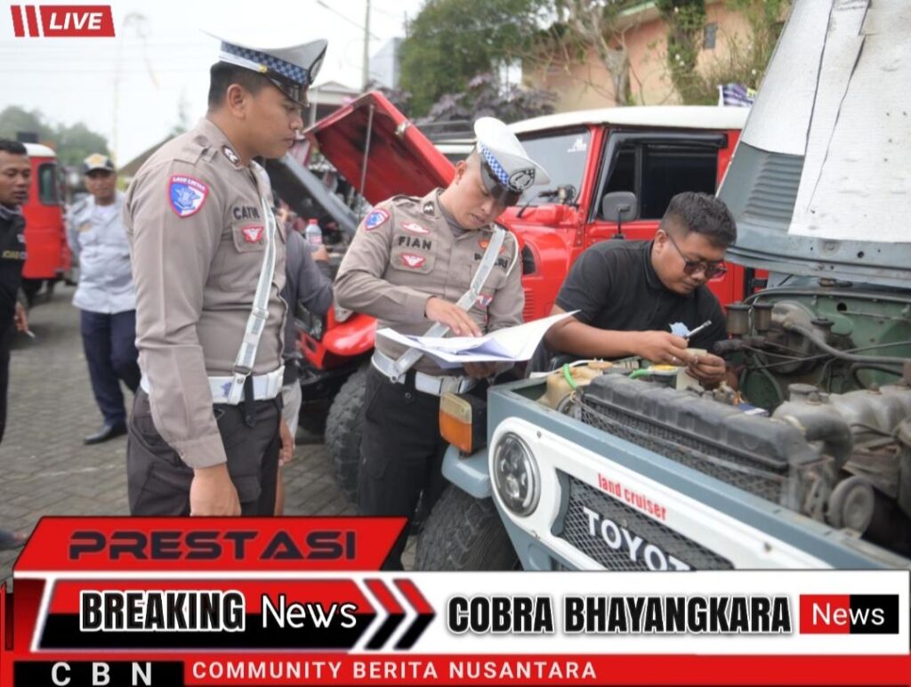 Sebanyak 35 unit jeep milik komunitas Jeep Bran Kulon, Desa Tosari, dicek satu per satu. Pemeriksaan meliputi kondisi mesin, sistem pengereman, lampu, ban, hingga kelengkapan standar pengamanan bagi penumpang.