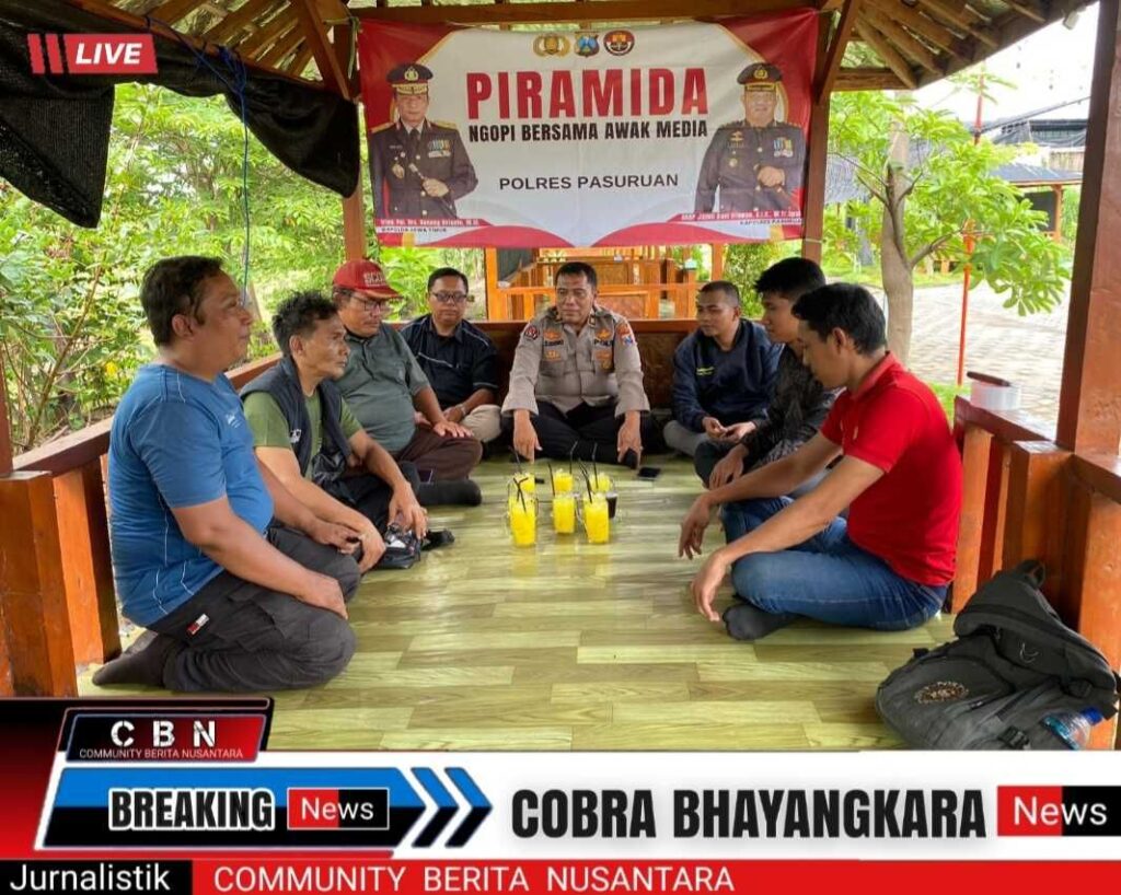 Polres Pasuruan melalui Seksi Humas menggelar kegiatan PIRAMIDA (Ngopi Bareng Bersama Awak Media) di Warung Ganjaran Rosella (WGR), Desa Mojoparon, Kecamatan Rembang, Kabupaten Pasuruan, Kamis (20/11/2025).