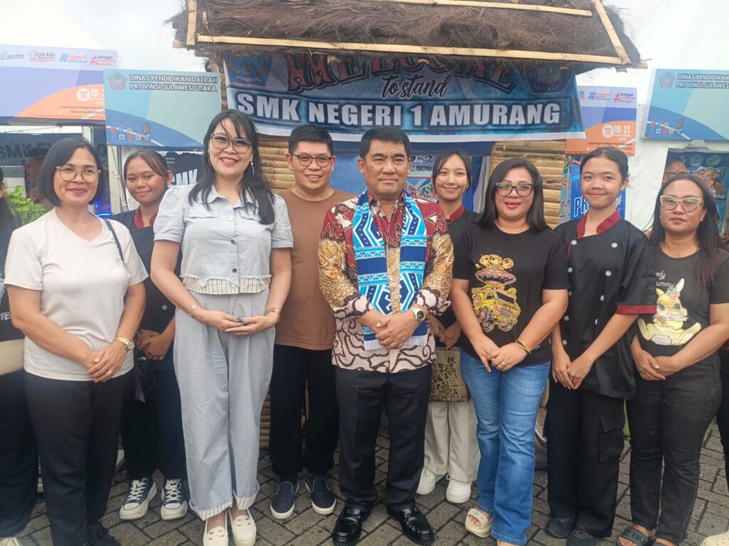 Kemeriahan semakin meningkat ketika Gubernur Sulawesi Utara, Mayjen TNI (Purn.) Yulius Selvanus, S.E., hadir meninjau langsung seluruh stand pameran, termasuk stand SMKN 1 Amurang. Dalam kunjungannya, orang nomor satu di Sulut itu memberikan apresiasi tinggi kepada para peserta didik yang dinilai mampu menunjukkan kualitas, kreativitas, dan kesiapan bersaing di dunia kerja.