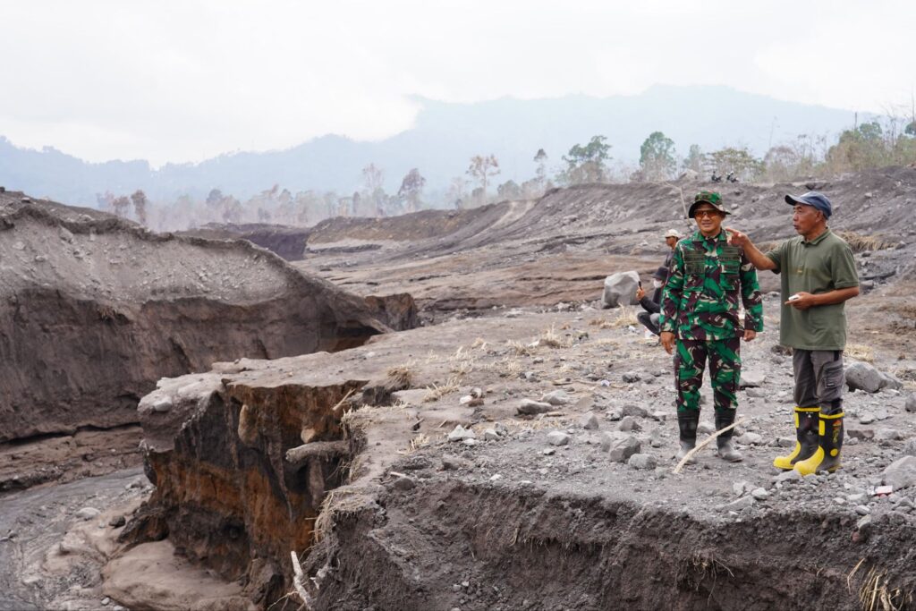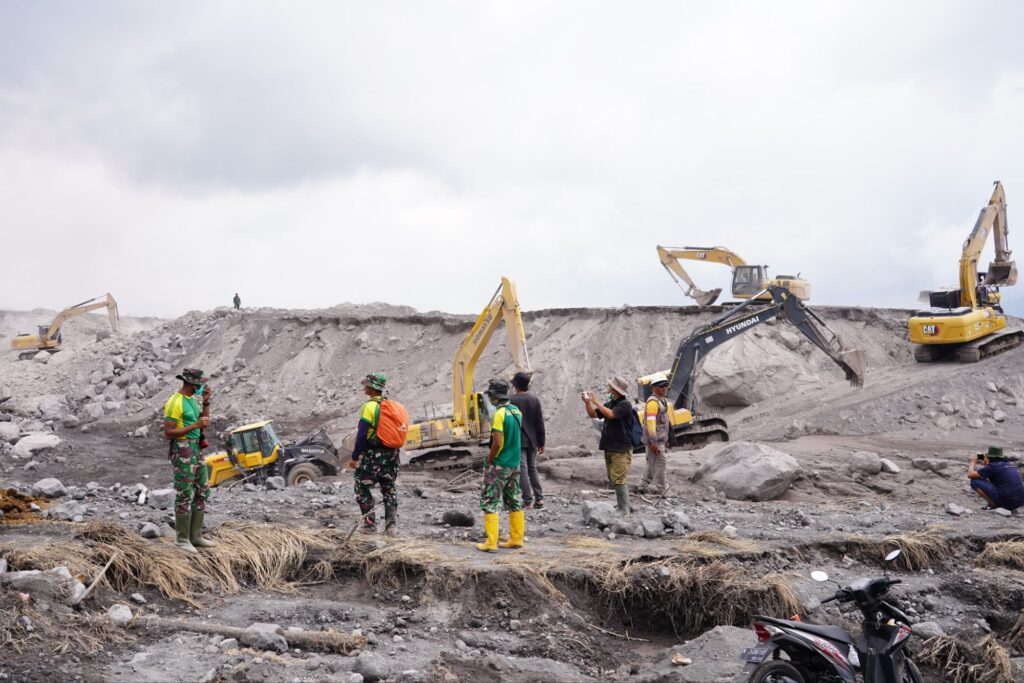 Prajurit TNI, Pemda & Relawan terus menunjukkan komitmen nyata dalam menjaga keselamatan masyarakat pasca erupsi Gunung Semeru. Di Desa Supiturang, Kecamatan Pronojiwo, Lumajang mereka tengah memperbaiki tanggul penghalang lumpur dan banjir lahar dingin yang telah dibangun puluhan tahun silam. (Lumajang 26 Nopember 2025)