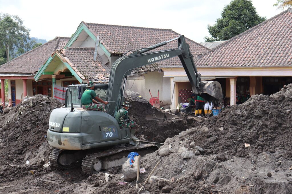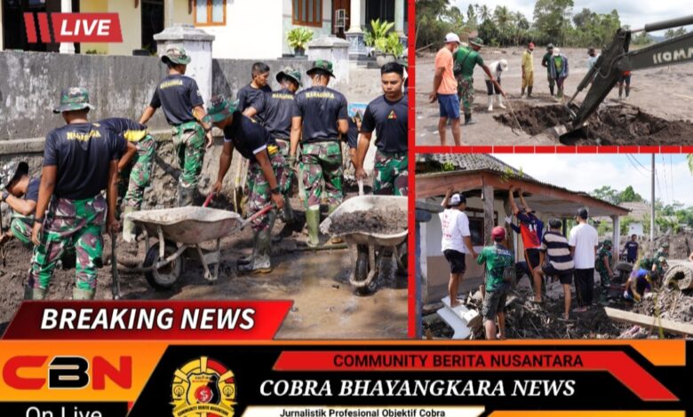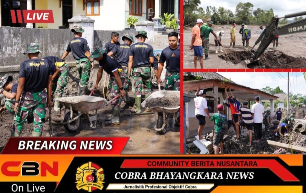 Pasca erupsi Gunung Semeru, TNI dari Divif 2 Kostrad bersama relawan terus bergerak membantu warga Desa Supiturang. Kegiatan karya bakti ini difokuskan untuk memulihkan kondisi lingkungan dan meringankan beban masyarakat. (Lumajang, 30 November 2025)
